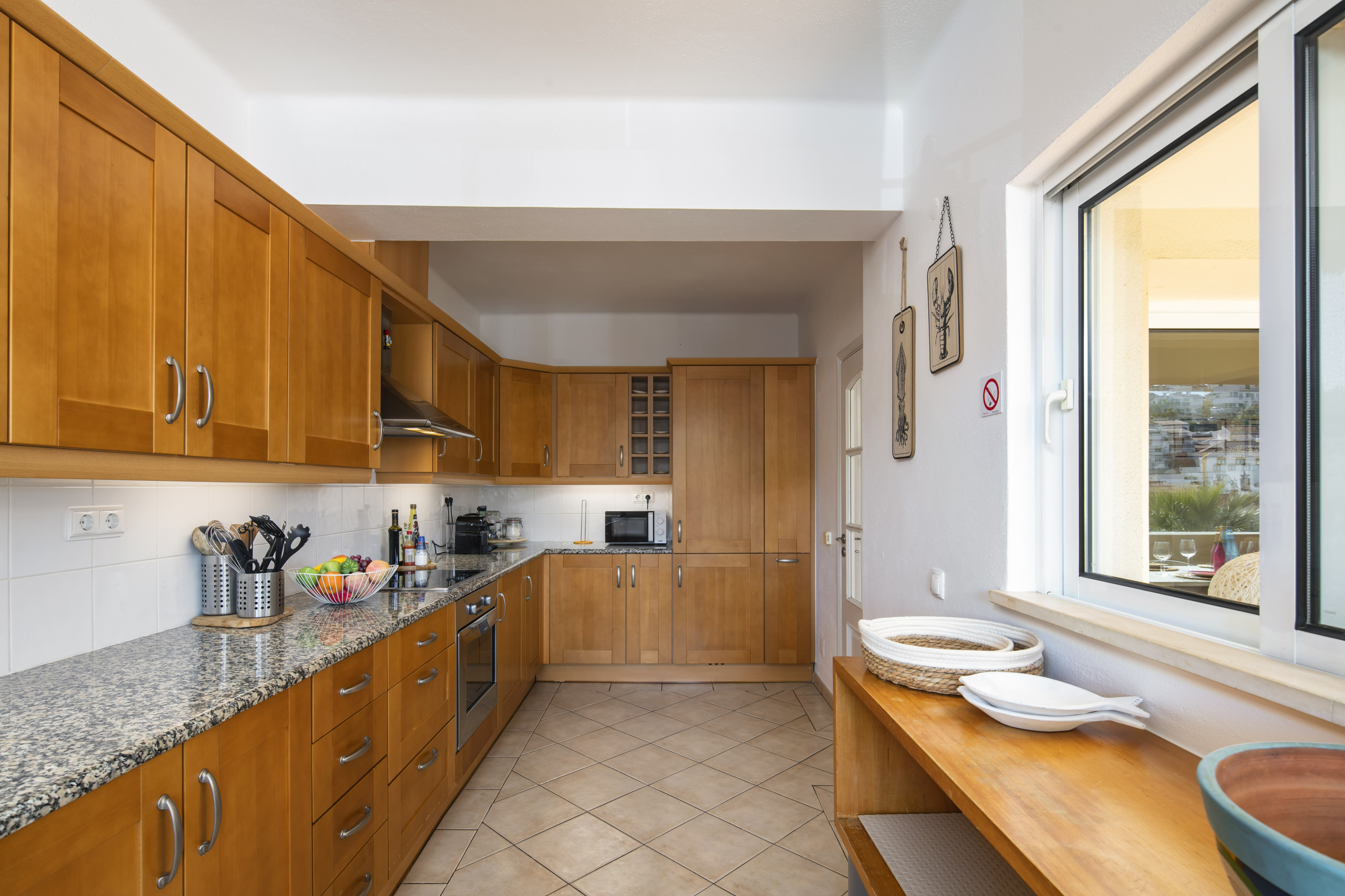 De onafhankelijke elektrische keuken is volledig uitgerust om aan al uw culinaire behoeften te voldoen. U vindt er een koelkast, vriezer, vaatwasser, oven, magnetron, koffiezetapparaat, broodrooster, waterkoker en sapcentrifuge. Compleet keukengerei, servies, bestek, borden en kommen zijn aanwezig, waardoor maaltijdvoorbereiding tijdens uw verblijf moeiteloos verloopt.