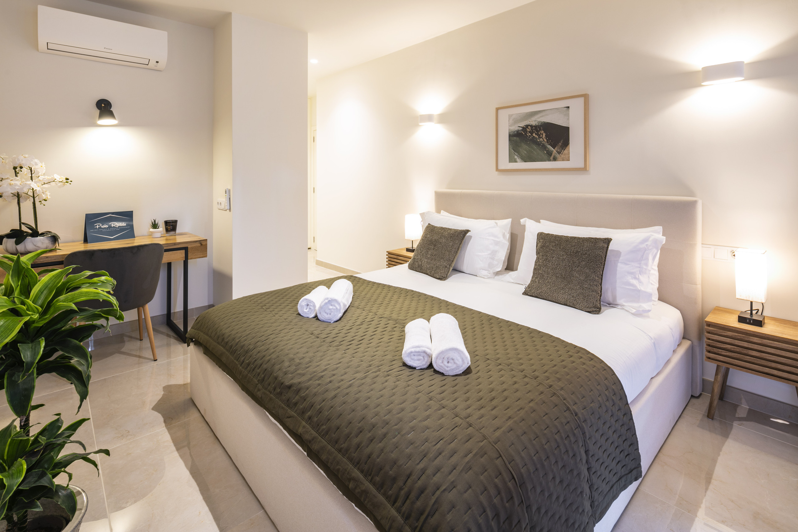 Casa Marinha 3 has two bedrooms. The master bedroom has a double bed and sliding doors to the terrace. The second bedroom has two single beds. Both bedrooms are equipped with air-condition.