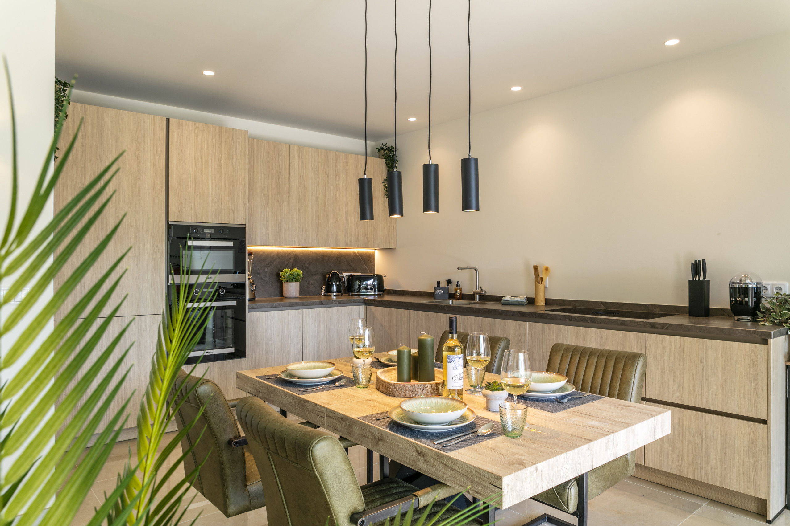 The cozy living offers space for 4 people. There is a dining corner and a lounge area where you can watch television on the lcs screen. From the living you walk through the covered patio to the terrace.